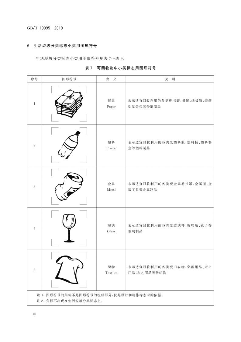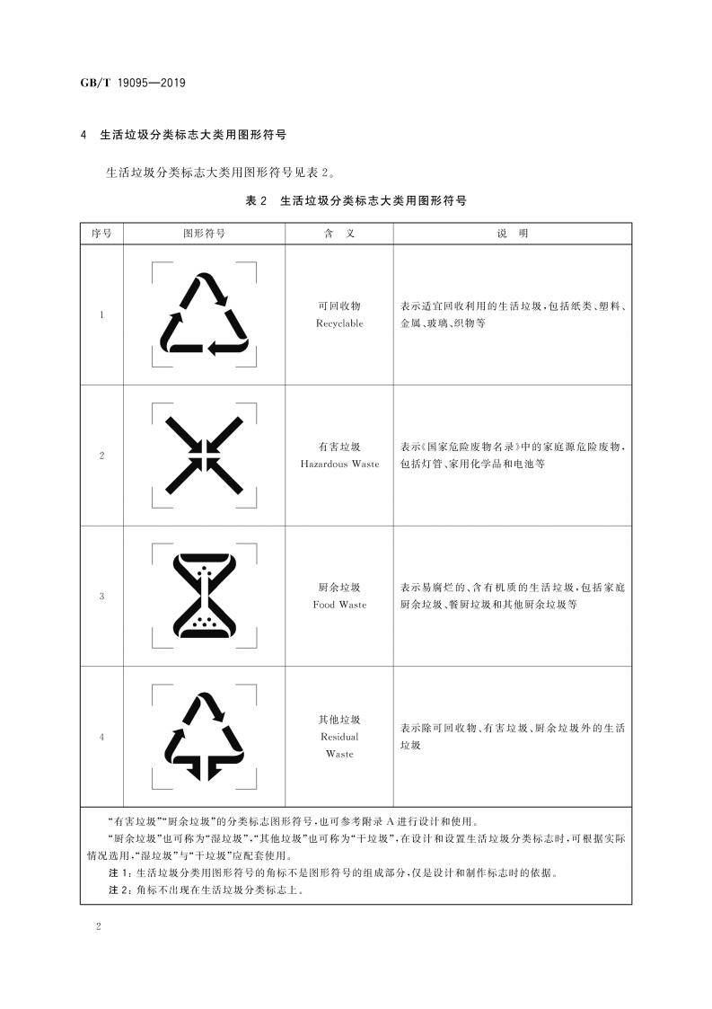 GB/T 19095-2019 生活垃圾分類標(biāo)志