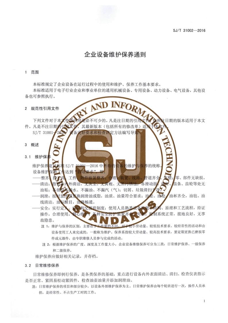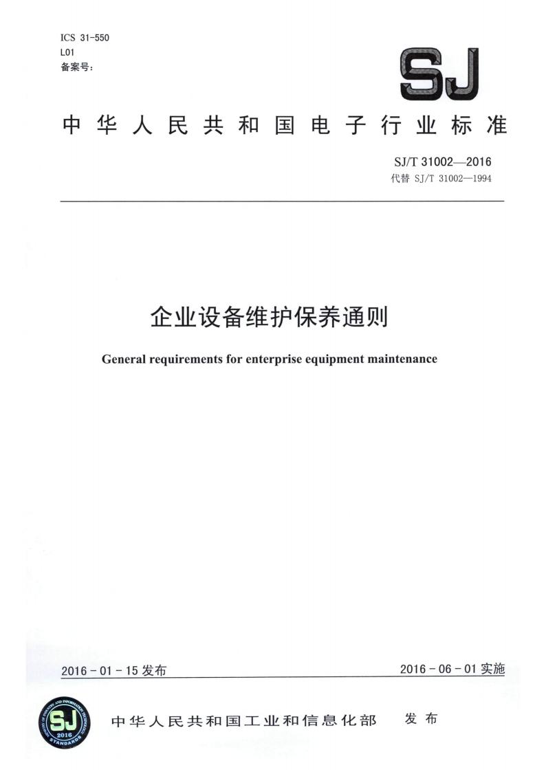 SJ/T 31002-2016 企業(yè)設備維護保養(yǎng)通則
