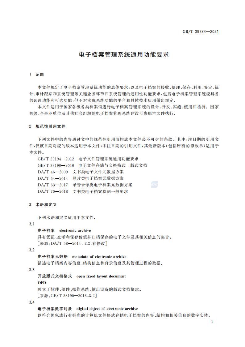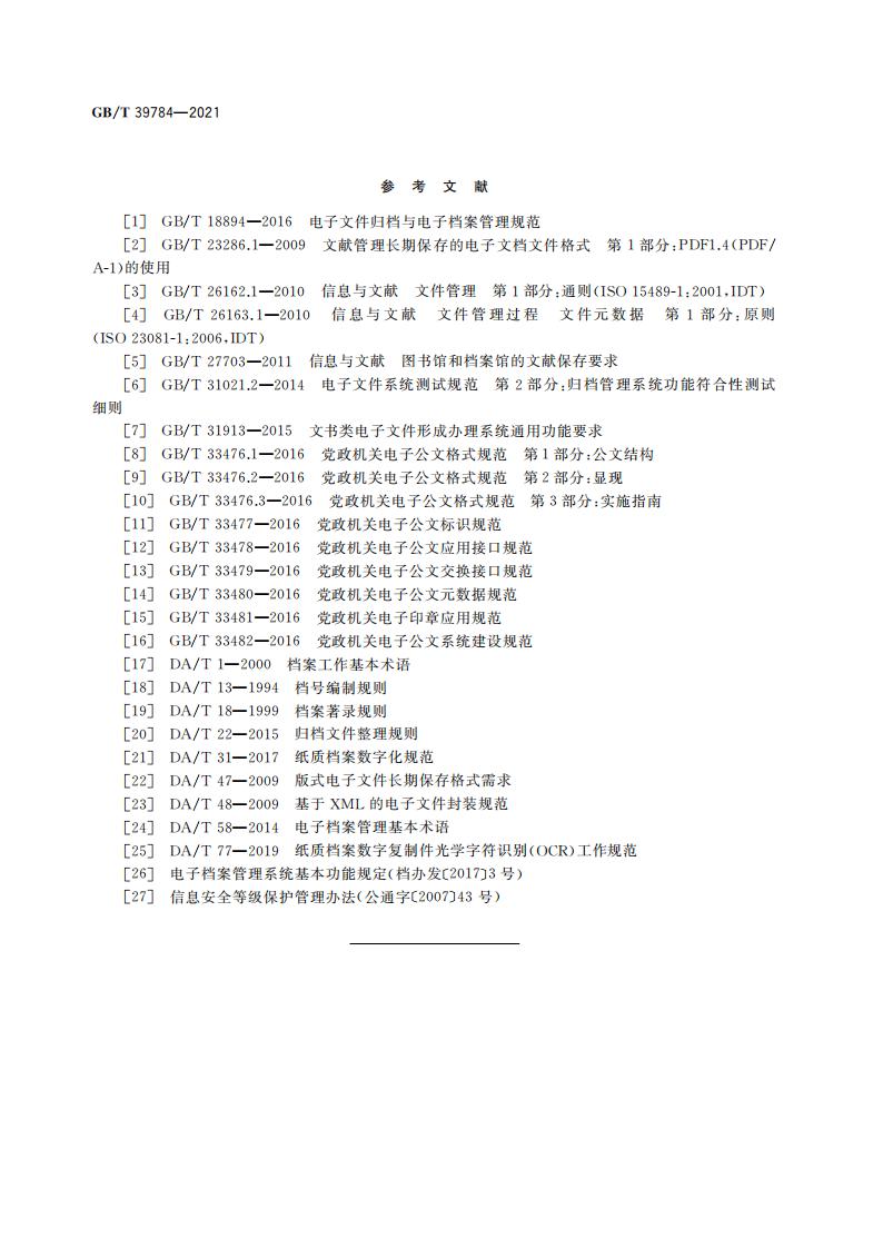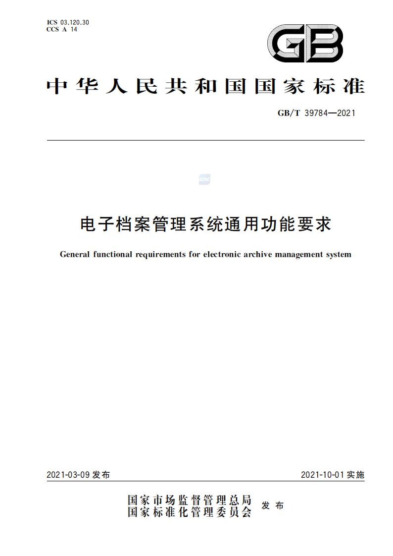GB/T 39784-2021 電子檔案管理系統(tǒng)通用功能要求