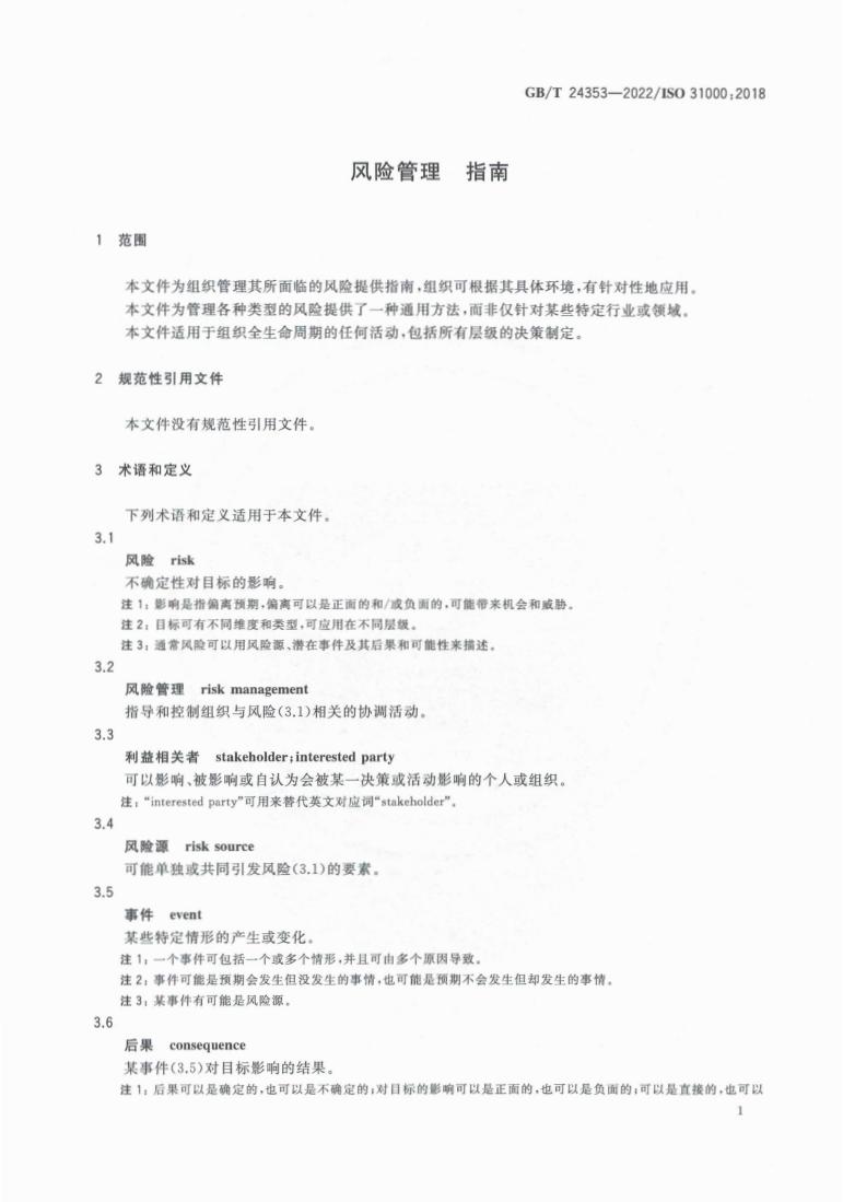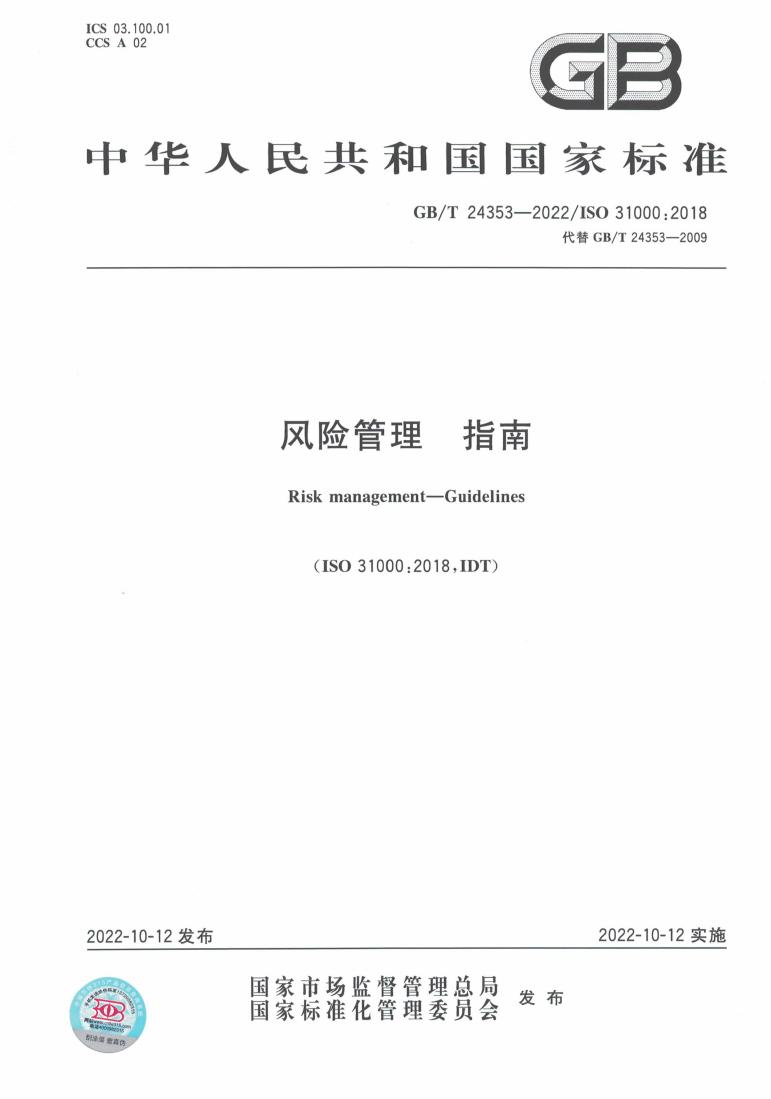 GB/T 24353-2022 風(fēng)險(xiǎn)管理 指南