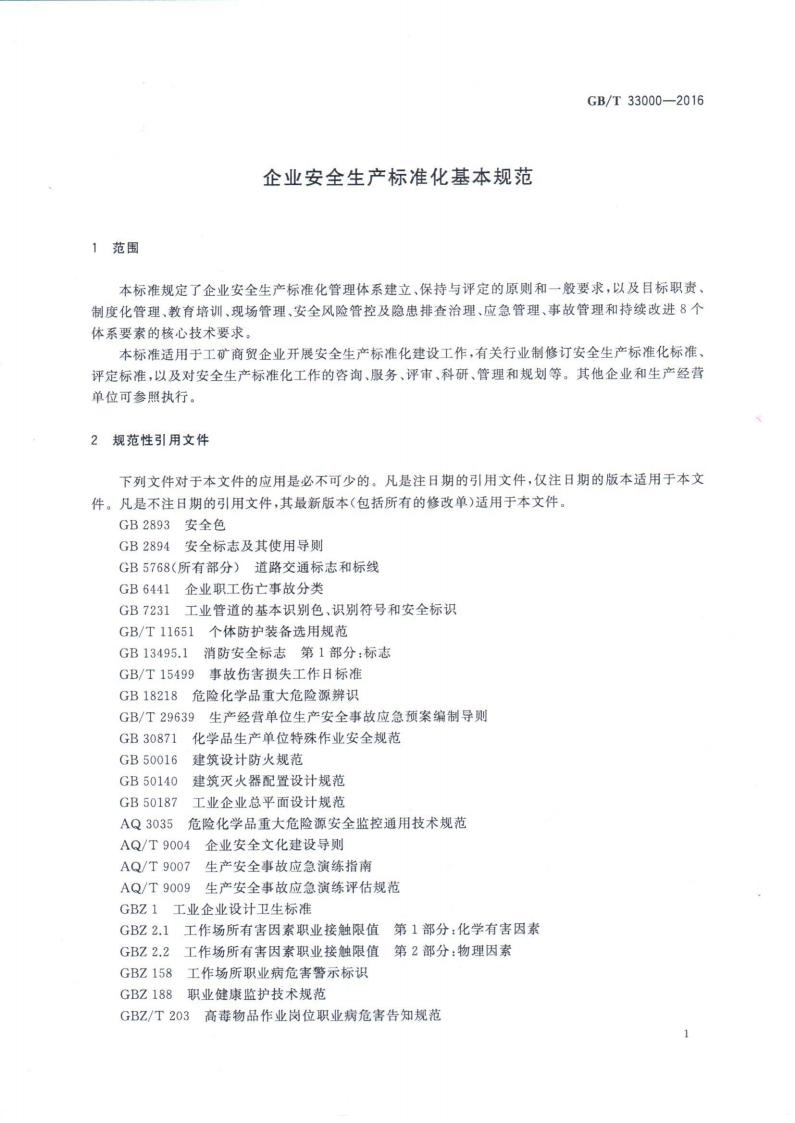 GB/T 33000-2016 企業(yè)安全生產(chǎn)標(biāo)準(zhǔn)化基本規(guī)范