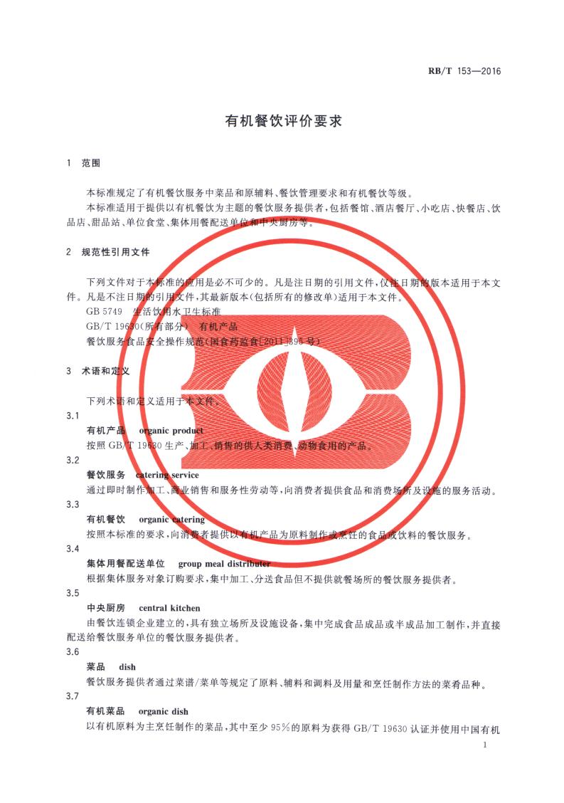 RB/T 153-2016 有機(jī)餐飲評(píng)價(jià)要求