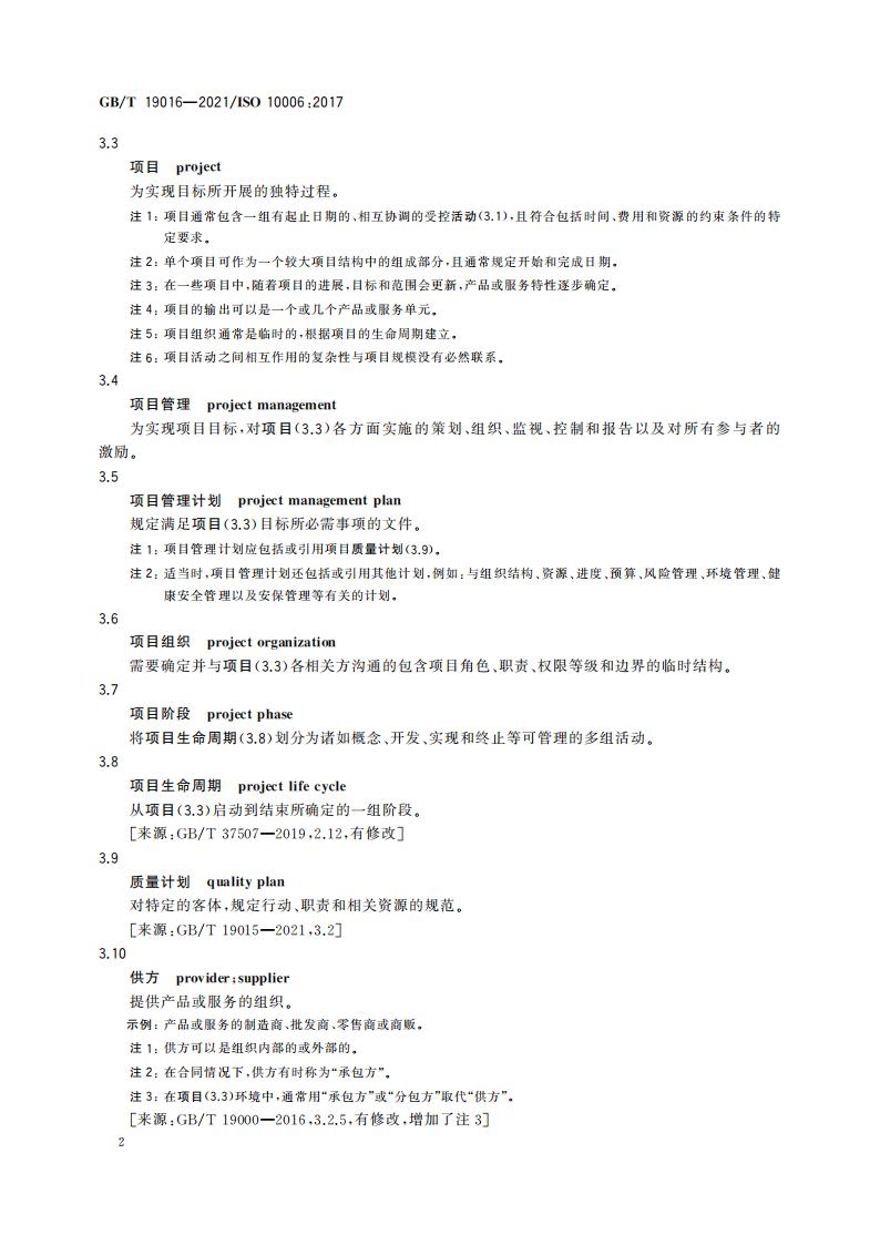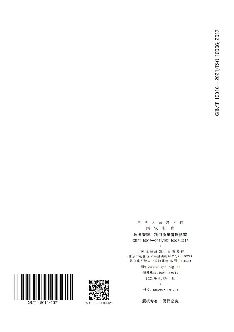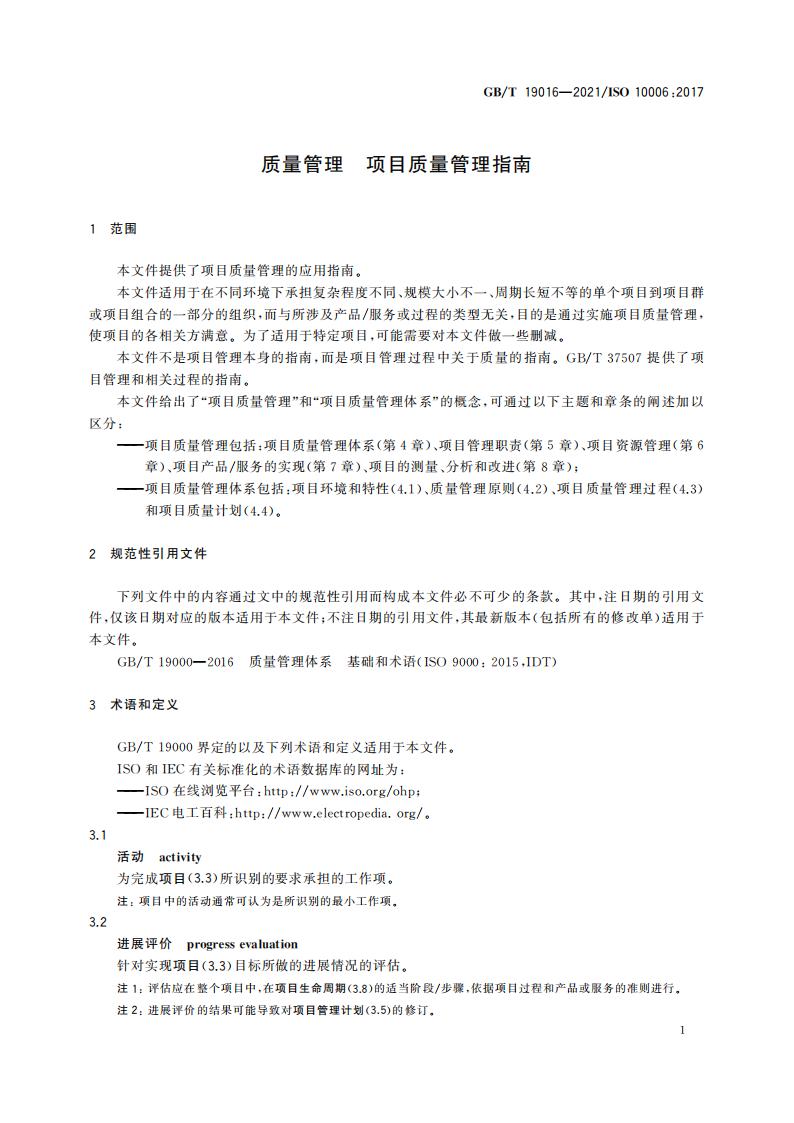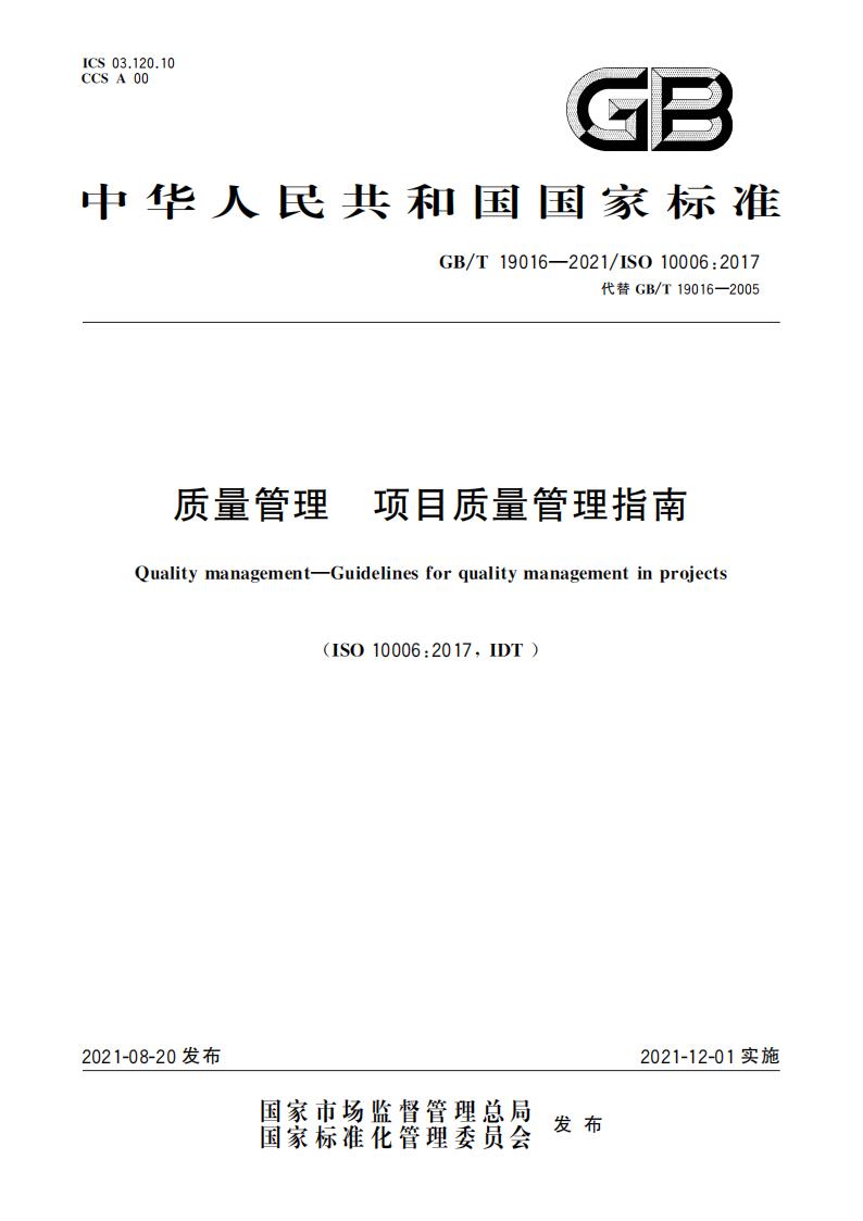GB/T 19016—2021/ISO10006:2017 質(zhì)量管理 項目質(zhì)量管理指南