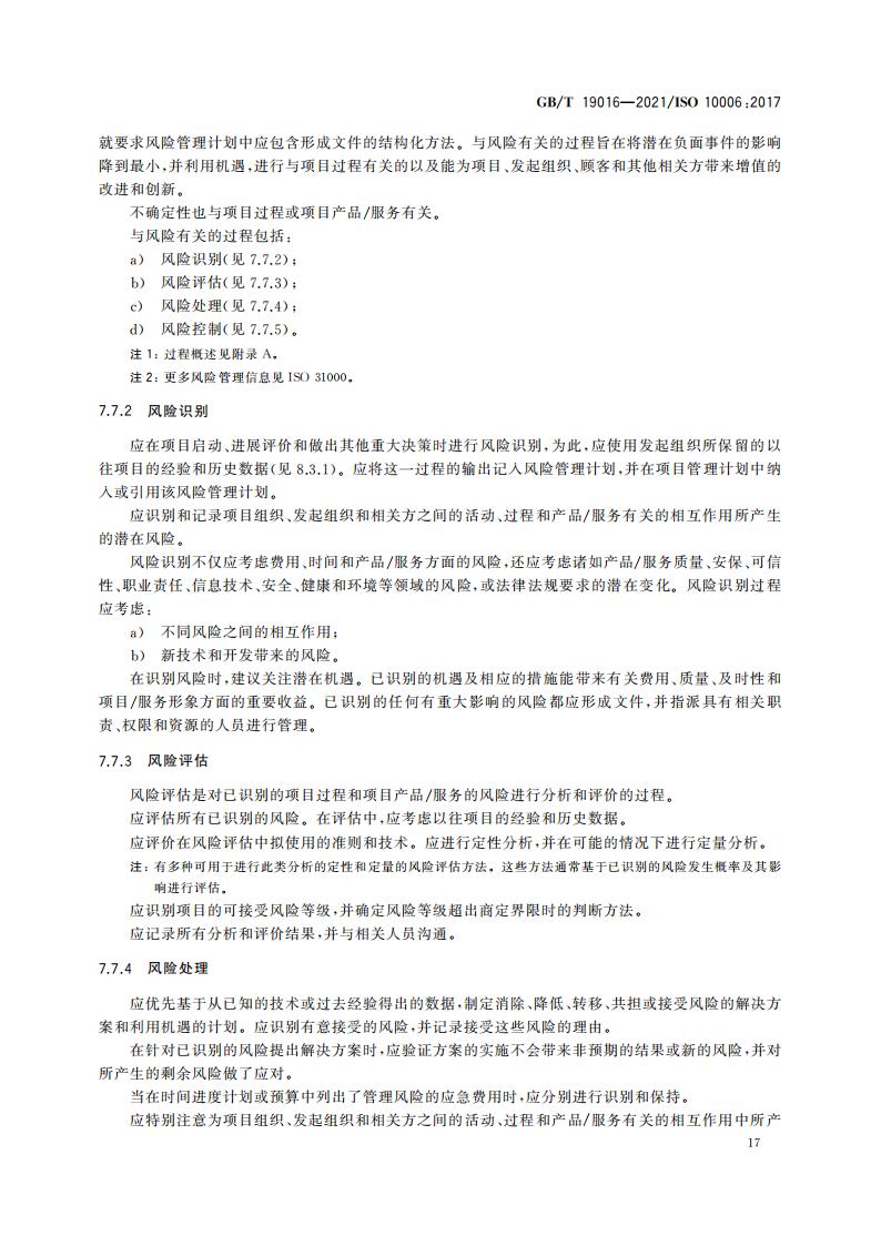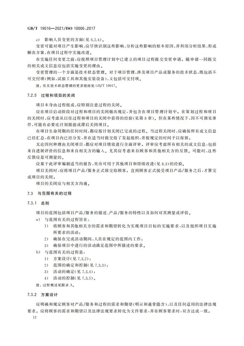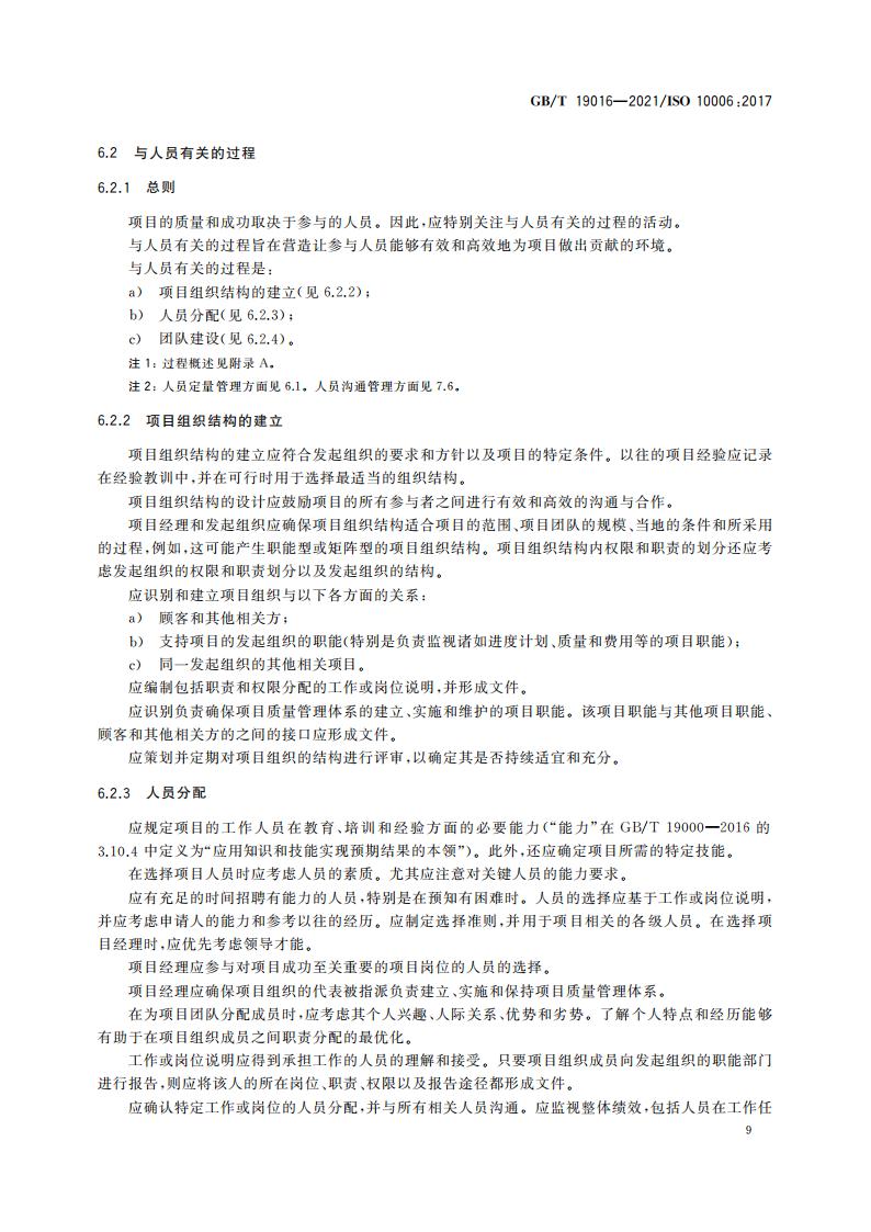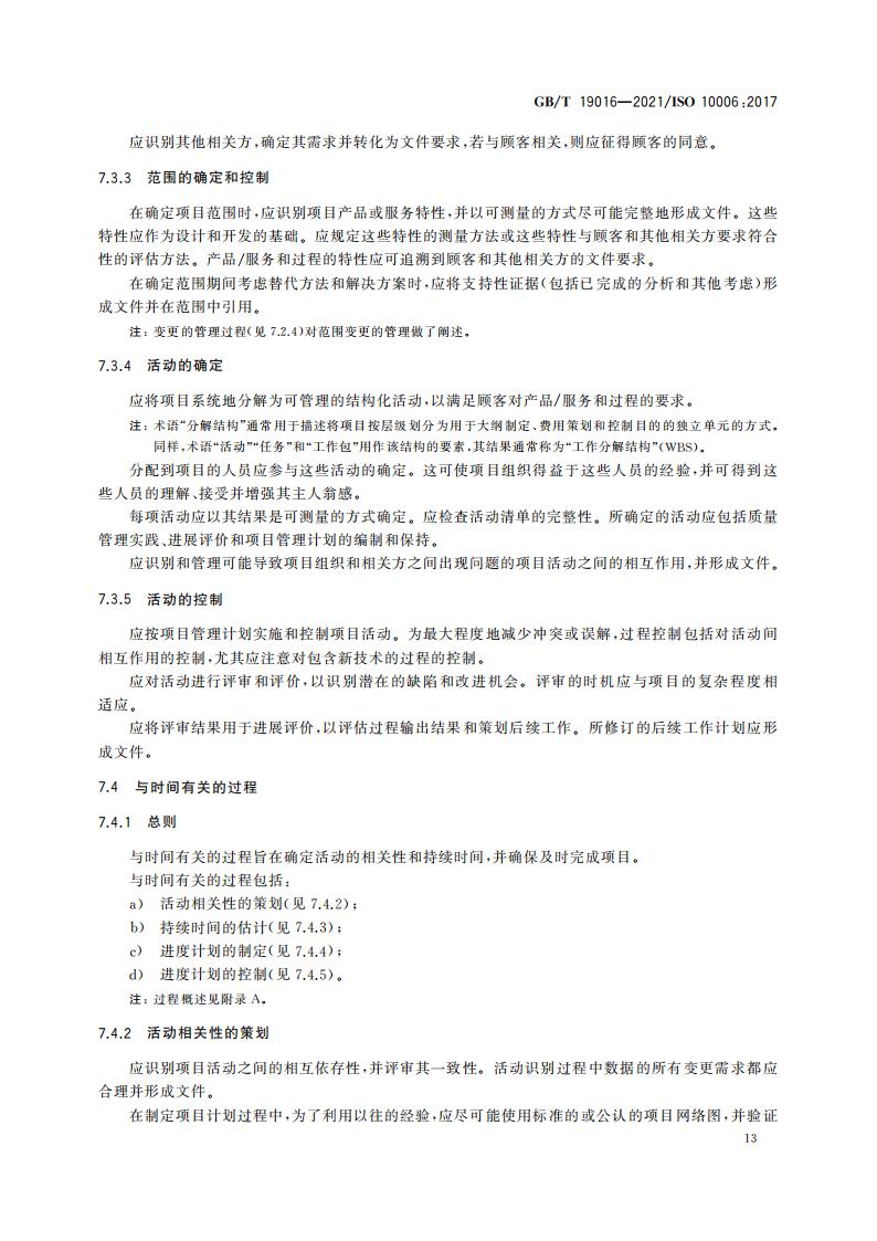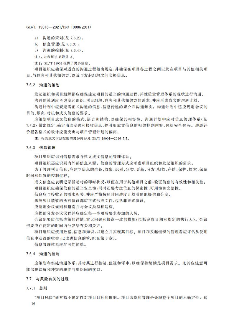 GB/T 19016—2021/ISO10006:2017 質(zhì)量管理 項目質(zhì)量管理指南